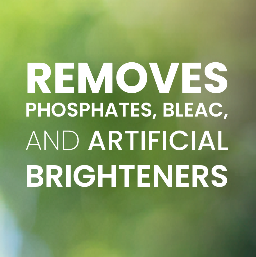 The ingredients included our laundry detergent have been carefully selected to include only safe cleaning agents…Eliminating any phosphates, bleach or artificial brighteners. This concentrated product is better for the environment with less plastic used for packaging, reducing plastic in landfills, and less electricity and fuel used overall.