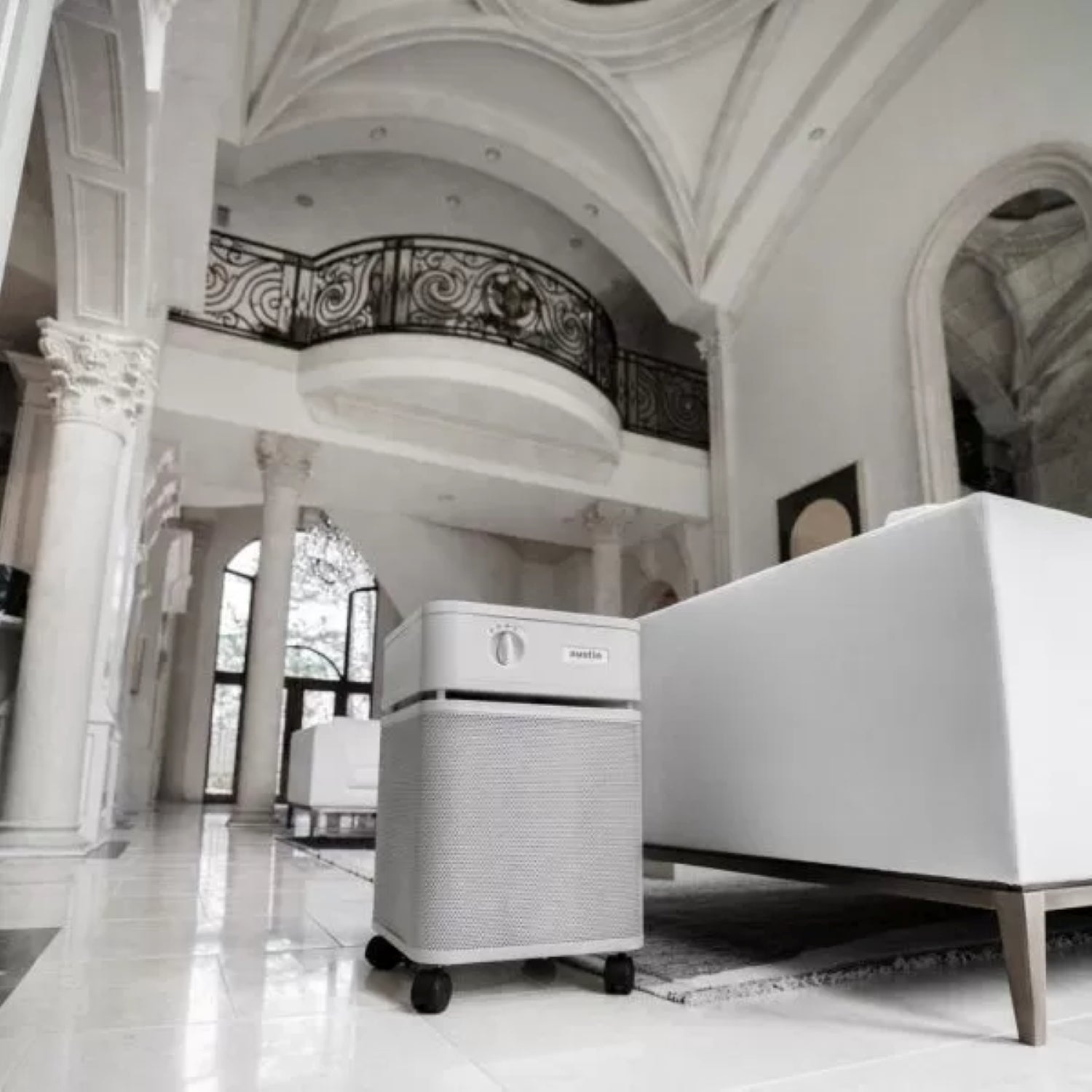 Austin Air’s 360-degree intake system draws air into all sides of the HealthMate Plus®, passing it through a 4-stage filter.